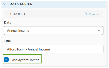 Use Display total in title to reflect the total of the data series in the title.