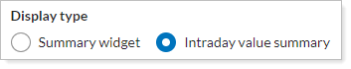 On the client portal Summary widget, use Display type to control whether you create a basic Summary widget or a Summary widget that includes intra-day values.