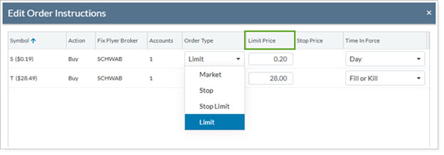 When you choose an Order Type of Limit (Order Type) or Stop Limit (Order Type), you then use Limit Price to indicate the execution price you want to apply.