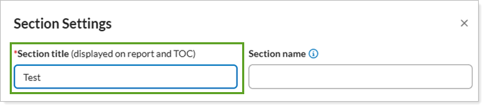 In some PDF reports, you have the option to rename a specific section. This setting allows you to customize your report by typing a name in the Section title field. The following are examples of Section Title as a PDF report setting: