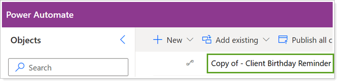 If you added a Tamarac flow template, complete the steps to copy the template. If you added a new Power Automate flow, you can proceed to the steps to turn on the flow.