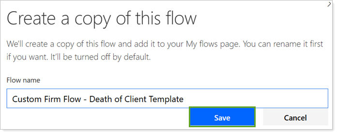 Type to enter a Flow name and select Save.