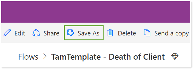 In the flow page, select Save As.