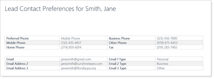 With this release, we’re introducing the Lead Contact Preferences and Account Contact Preferences Word Templates that include key contact information for effective client and prospect communication. They capture data such as preferred contact methods, delivery methods, phone numbers, email addresses, and more.
