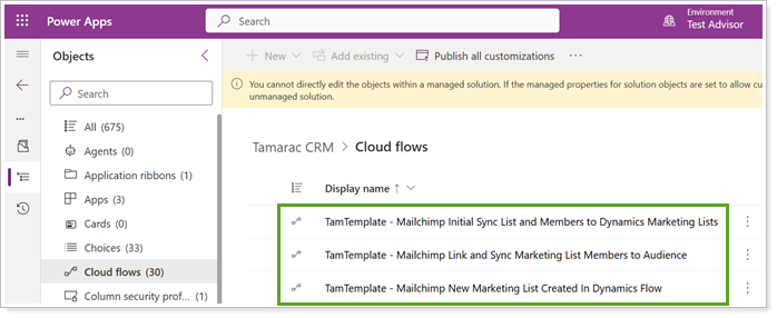 In Solutions, select Tamarac Power Automate Flows (Custom).
