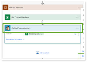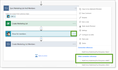 In Show list members, select the menu and choose the Mailchimp connection reference created previously.