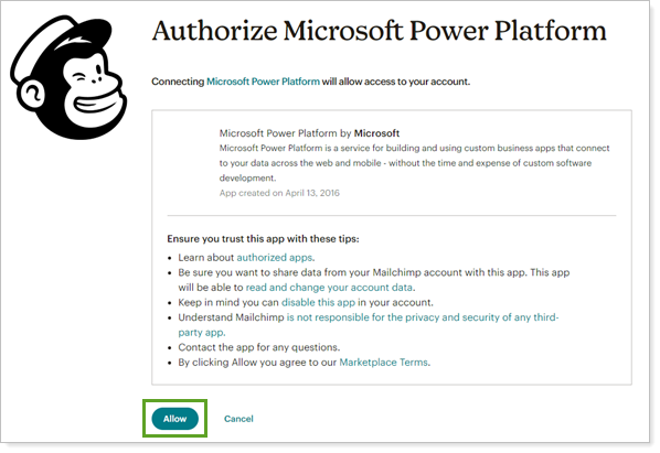 If the user Mailchimp credentials linked to this integration change in the future, you must re-establish the connection references in Cloud flows.