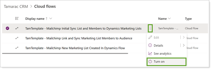 In PowerAutomate, open TamTemplate - Mailchimp New Marketing List Created In Dynamics Flow.