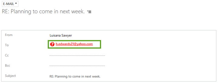 Sometimes you will notice that one of the email contacts is listed in red. This means Tamarac CRM can't find that the email address for any contact, lead, or user in the system. For example, you are reviewing an email to Henry Edwards that was in response to an email he sent from an email address that is not currently listed in his contact in Tamarac CRM. The email address he sent from is listed in red and needs to be added to his contact.