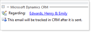 You can still track the email by navigating to it in your Sent Items folder and setting regarding the same as if doing so on an incoming email. This will track the email into CRM. You can track more than one email at once by selecting all of the ones you wish to track, then clicking Track.