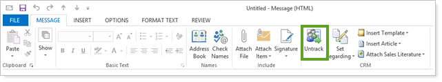 Tracked emails will also show the Untrack button in the CRM portion of the email ribbon.