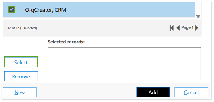 Choose Select to add search criteria from all available fields for the record or entity, including background fields that are not in use and related record fields.