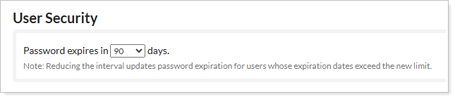 Your firm can customize the desired expiration interval on System Settings under User Security.