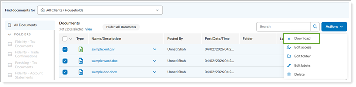 If your clients need to send or receive statements, tax documents, or onboarding materials, bulk actions make the process faster. Bulk actions organize document exchanges and reduce back-and-forth, especially when your clients handle multiple files.