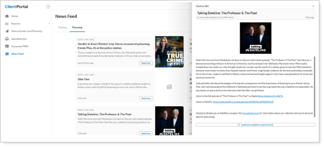 News page in the Client Portal