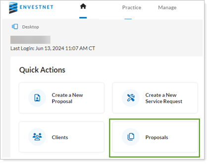 In Envestnet: On your Envestnet Desktop, select Proposals.