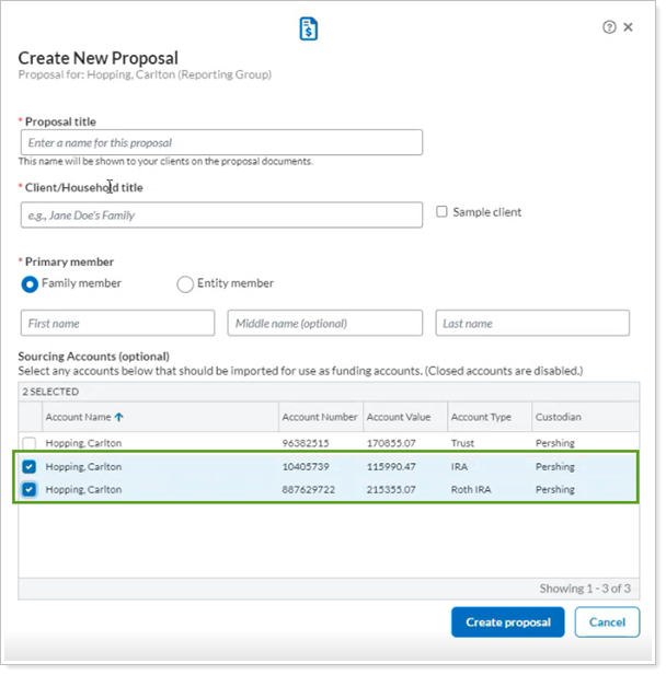 This topic provides steps to create a new proposal in Envestnet to transition one or more existing Tamarac accounts to a Tamarac UMA on Envestnet.