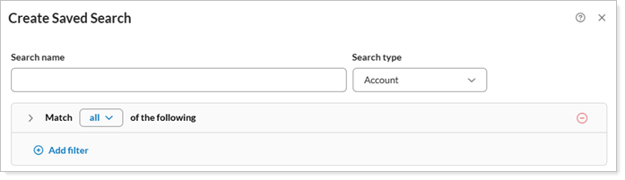Search filters define a single type of search criteria. By adding a single search filter, you're narrowing your search results to just those accounts that conform to that search filter. For example, you can use the Account Type filter to find all IRA accounts.