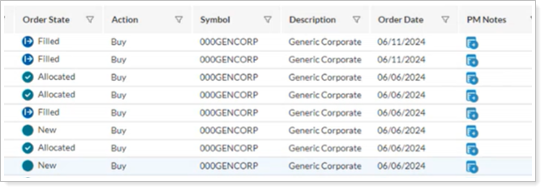 You can access a portfolio manager’s individual account Order Notes from the PM Notes column.